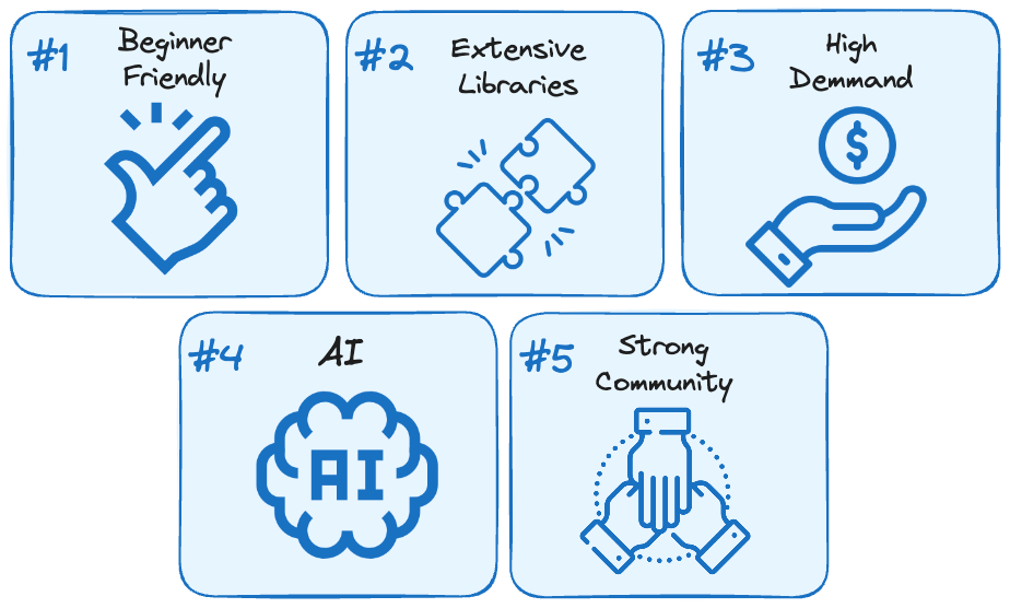 One of Python’s greatest strengths is its active community. With numerous tutorials, forums, and resources, help is always available. This vibrant support system ensures you won’t be stuck for long when facing a challenge.