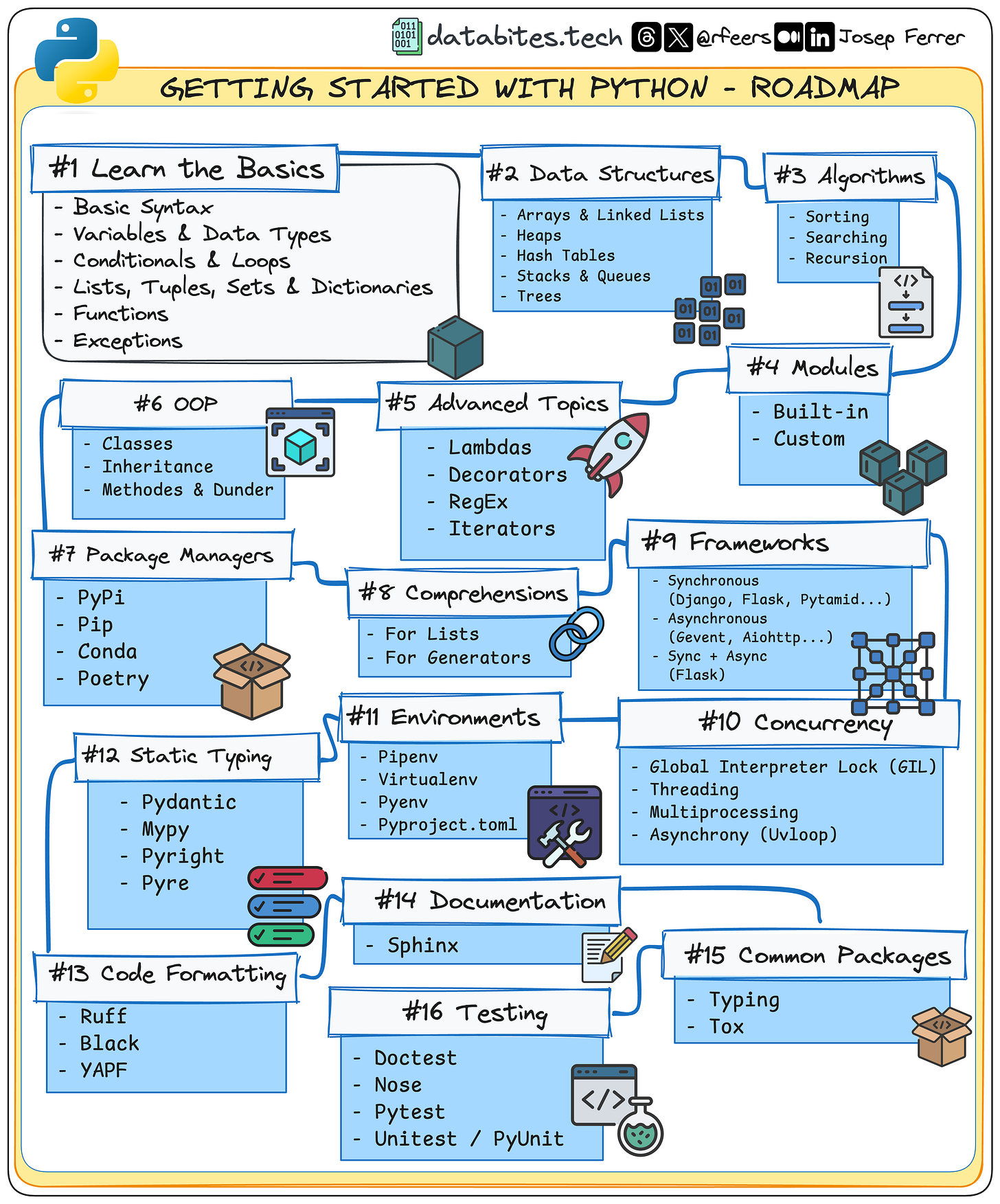 Master the Basics: Begin with Python fundamentals—variables, control structures, functions, and data types.