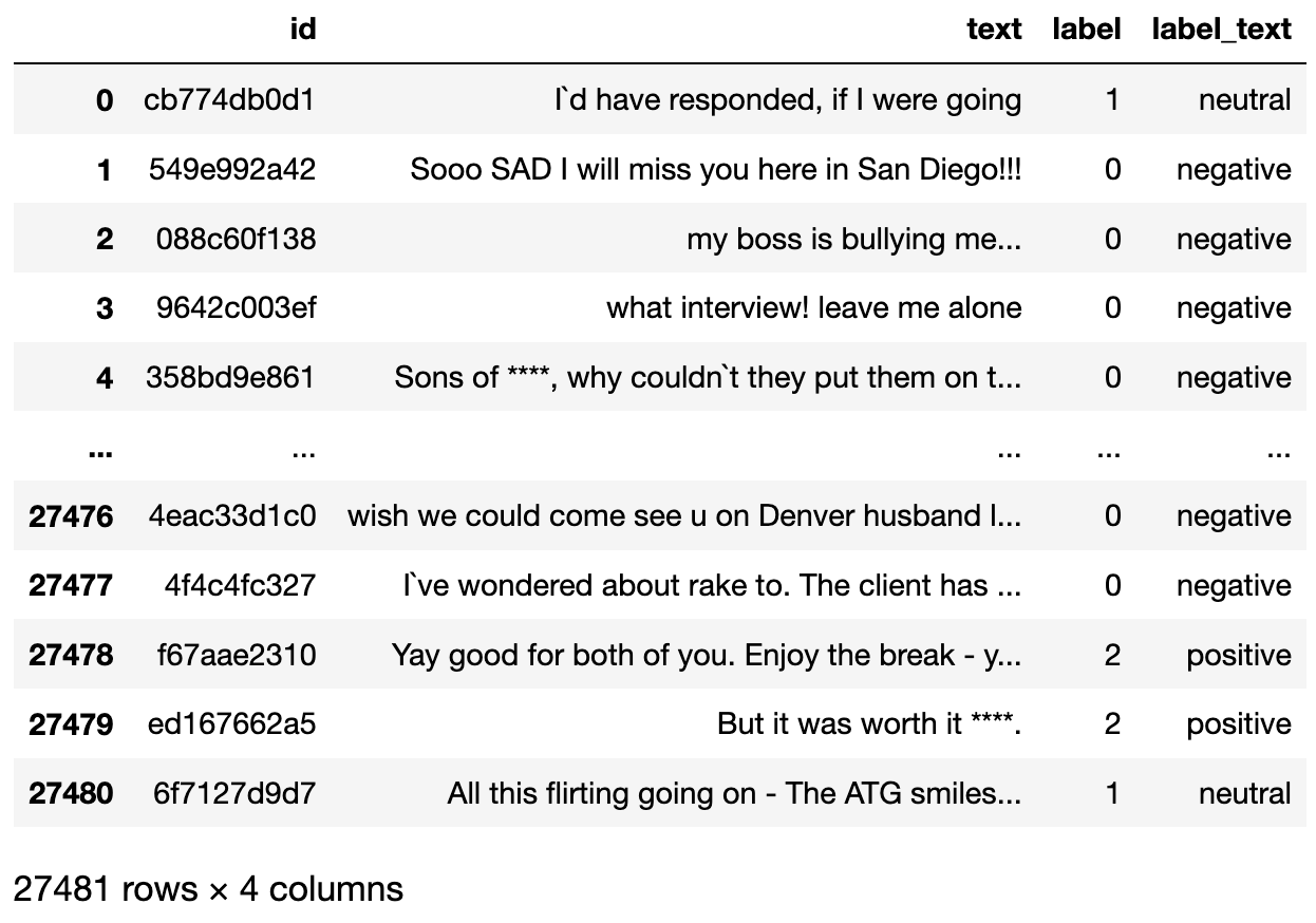 dataset = load_dataset(âmteb/tweet_sentiment_extractionâ)