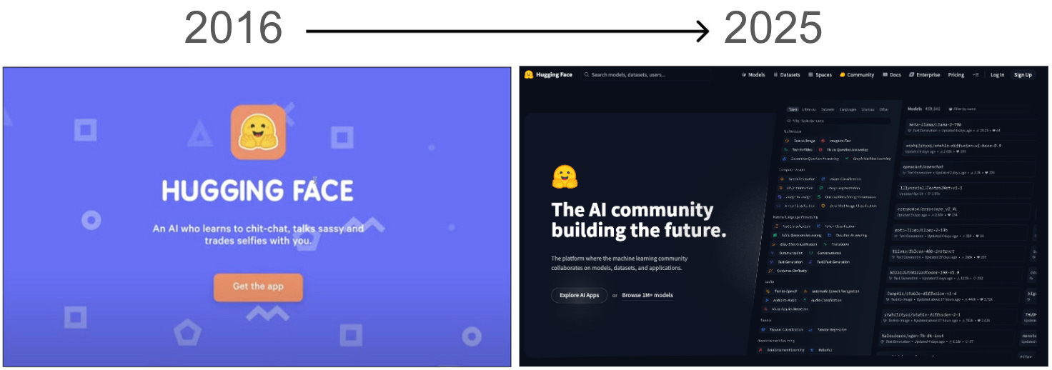 Founded in 2016, Hugging Face originally aimed to create a chatbot targeted at teenagers. However, the company quickly pivoted after open-sourcing its underlying model, leading to the creation of the Transformers library in 2018.